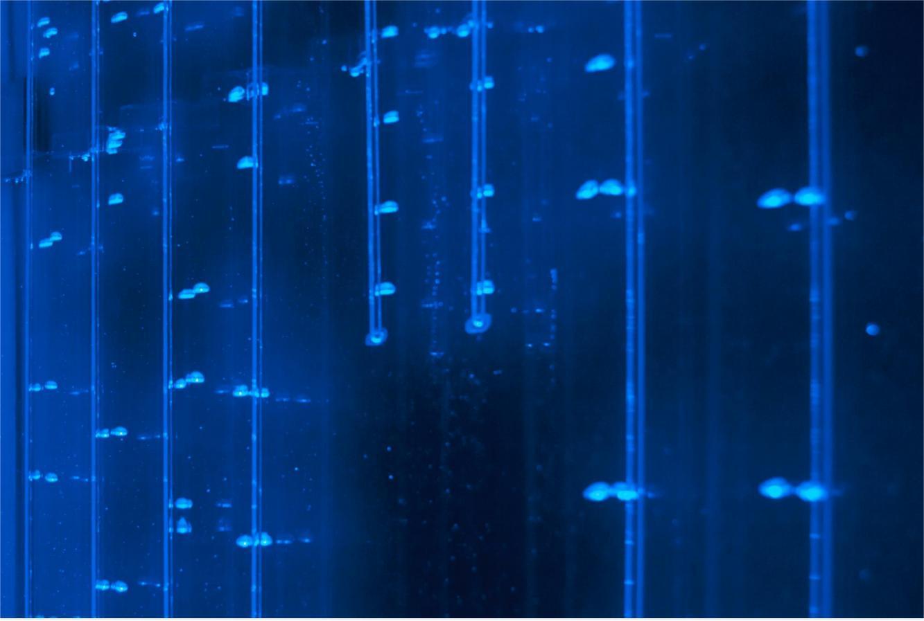 测量原理:通过测量短时间孵育过程中的氧通量和△pH,从这些浓度变化计算呼吸作用(R)和光合作用(P)从而得出RQS(呼吸速率)和PQS。样本回路提供用于滴定检测的总碱度(TA)的水样,以测量钙化率(G)。同时采集的水样还可以用于测定可能影响珊瑚代谢的物质(例如,酸化海水)。测量过程可根据实验设计设定流速和光照水平梯度(获得PvsI曲线)